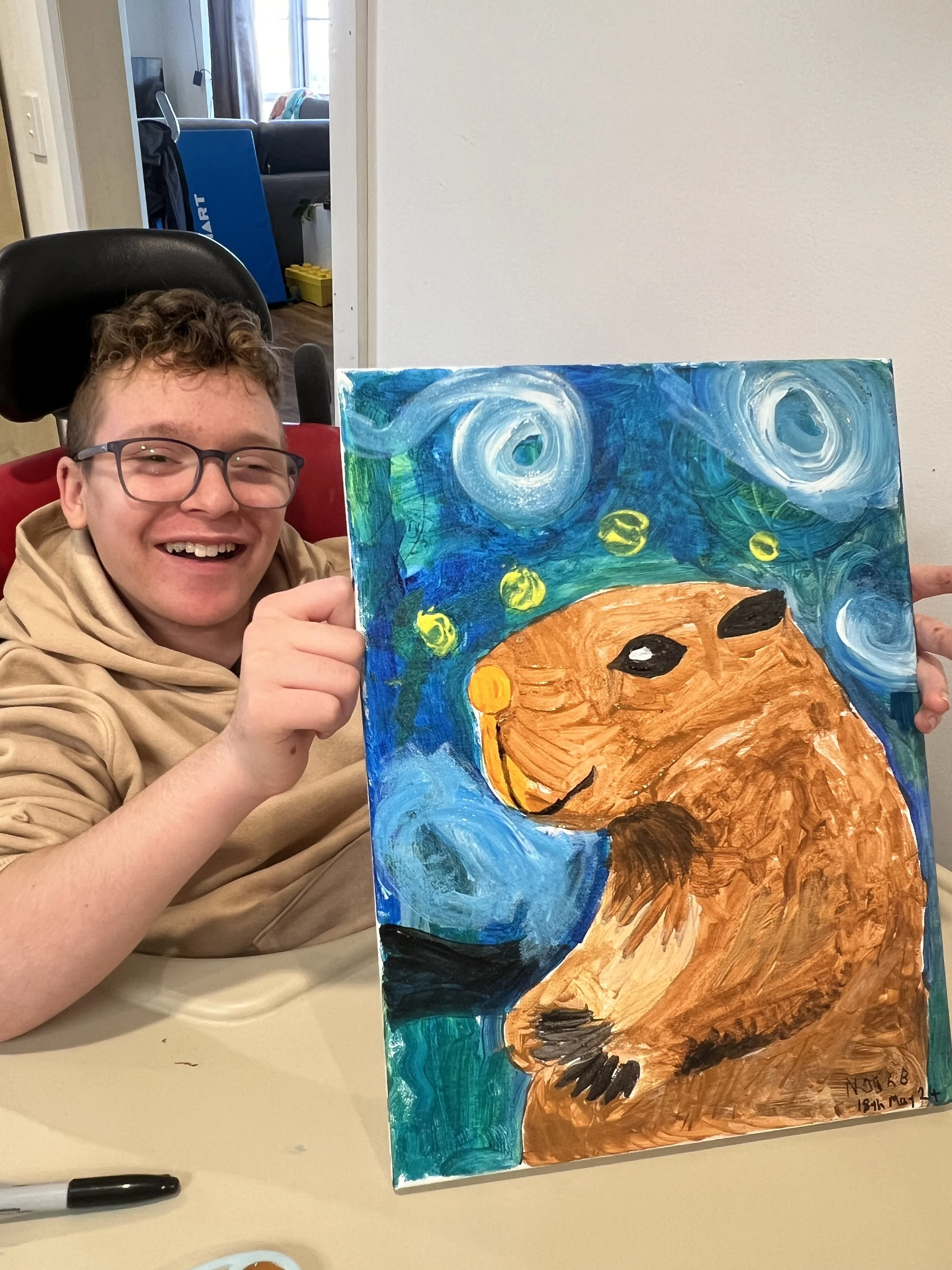 “I just love the way Noah’s painting looks on my wall at home. People ask about it all the time and it’s so nice to have an original piece and know the artist too!”