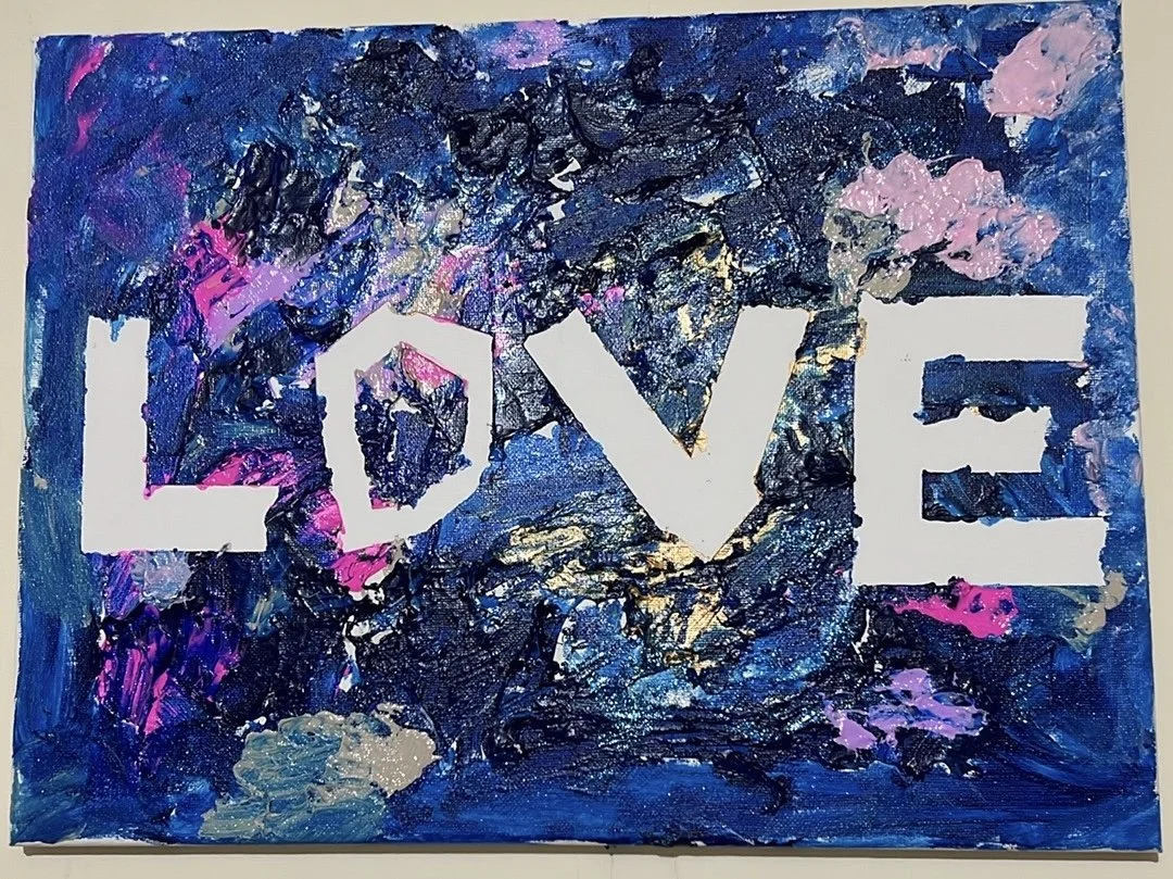 This was a piece called Love I made with paint and a hairdryer. At the time I couldn’t use a brush so did this instead. There is always a way.